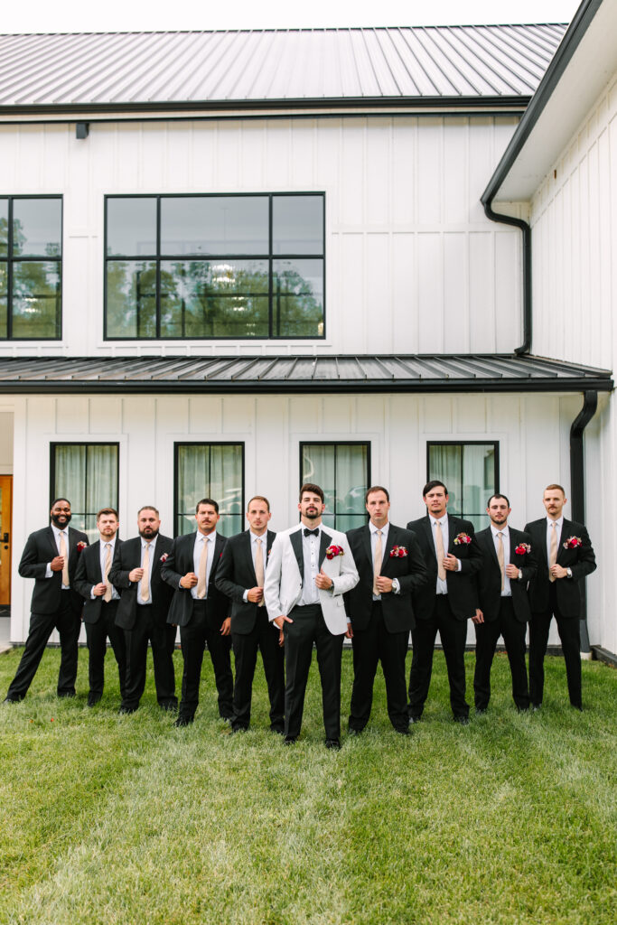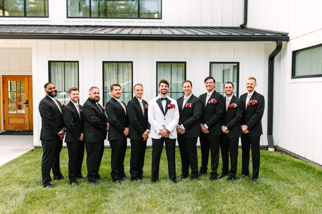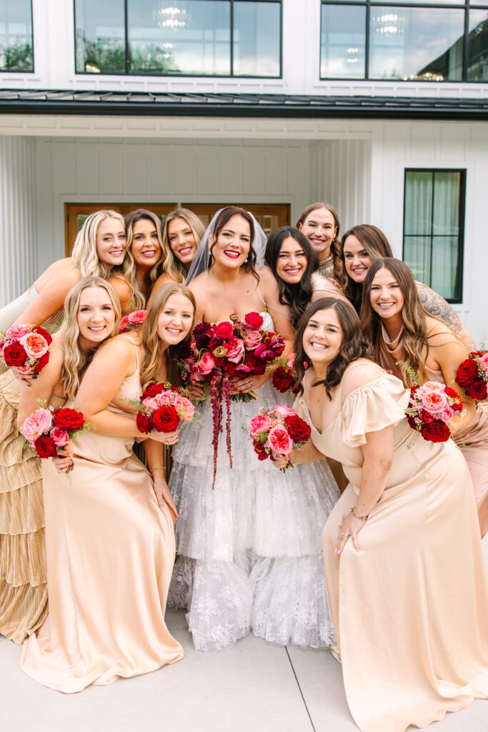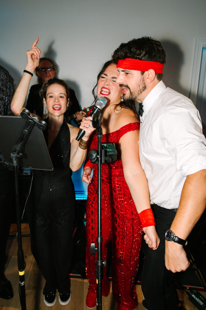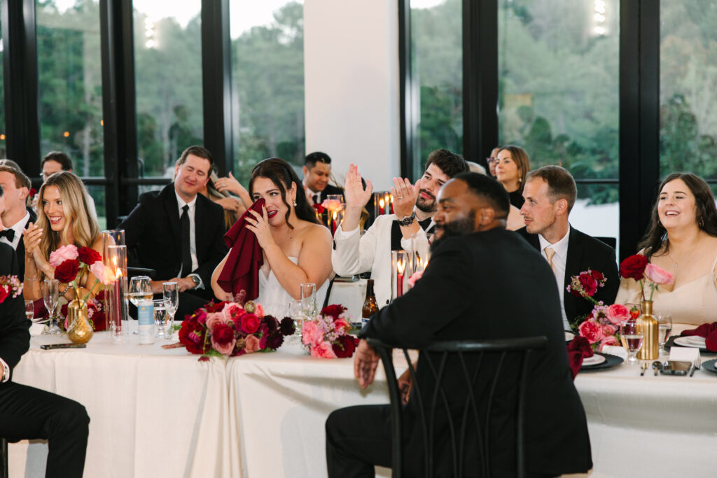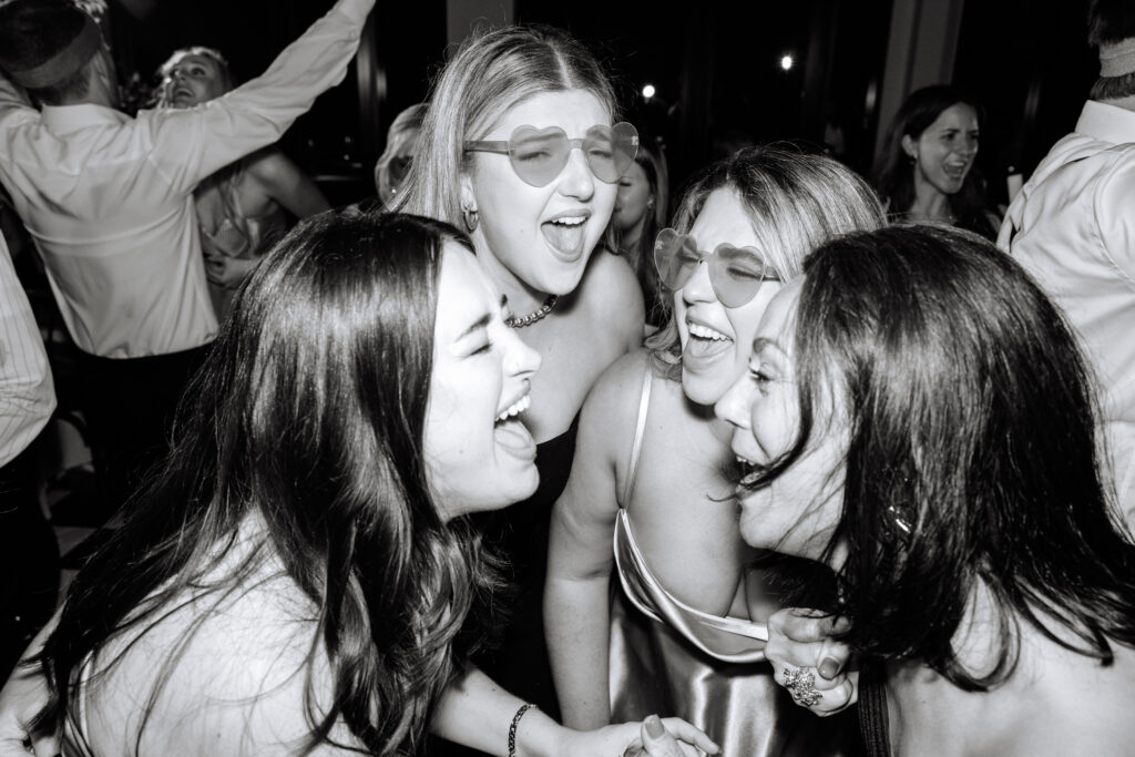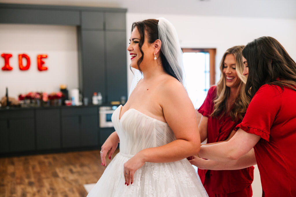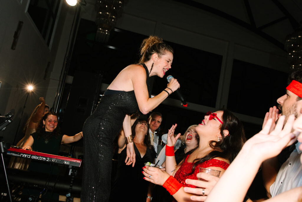 Then came the moment everyone was waiting for… the celebration. And oh my goodness, did this group know how to party! The Emerald Empire Band kept the dance floor packed all night long — no one even thought about sitting down. Lauren was the most ICONIC bride and surprised everyone by changing into a bright red, bejeweled jumpsuit (because how else are you supposed to do the splits during “London Bridge” by Fergie?). And to top it all off, they passed out red sweatbands for everyone to wear on the dance floor — easily one of the most fun, high-energy receptions we’ve ever photographed. You bet I was in the middle of it all taking photos and dancing alongside them!